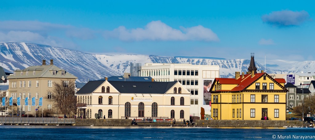 After spending about 45 minutes around the area, we drove back to our hotel. On the way, we stopped at a small mostly frozen lake called Tjörnin in downtown. From the western shores, you can experience a beautiful view of Reykjavik downtown.