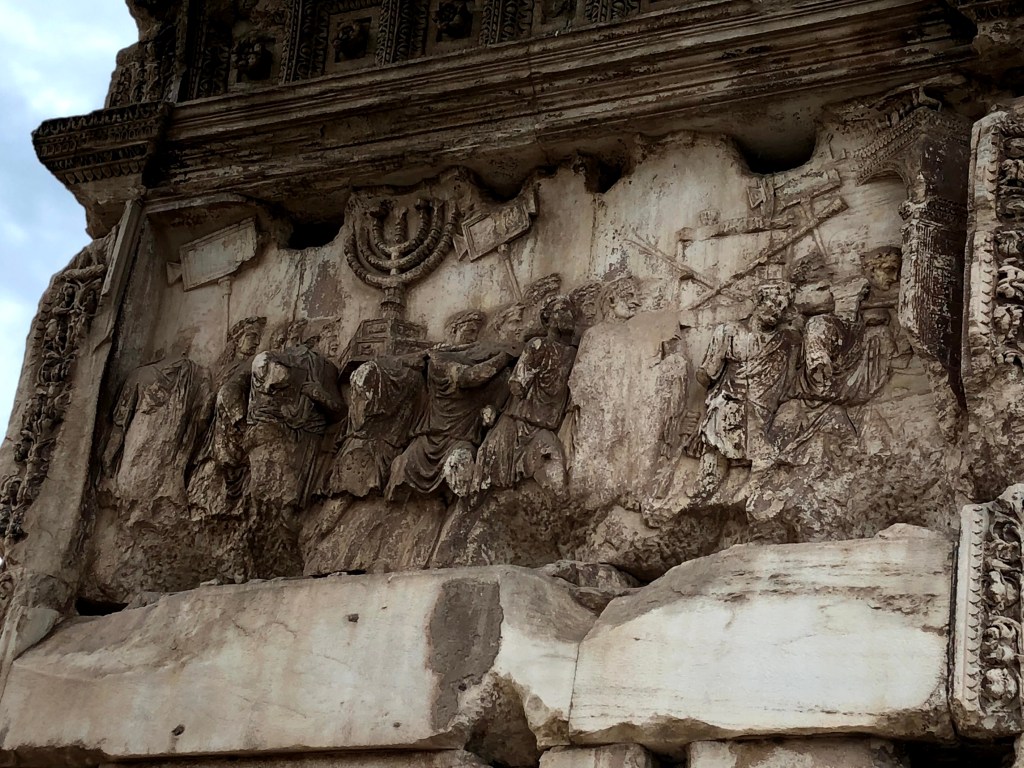 Arch of Titus is the first monument you will see when you enter the Forum from Colosseo. It was constructed in 81 AD by the Emperor Domitian shortly after the death of his older brother Titus to commemorate his official deification and his (Titus’s) victory together with their father, Vespasian, over the Jewish rebellion in Judaea. The arch contains panels depicting the triumphal procession celebrated in 71 AD after the Roman victory culminating in the fall of Jerusalem. It became a symbol of the Jewish diaspora, and the menorah depicted on the arch served as the model for the menorah used as the emblem of the state of Israel.