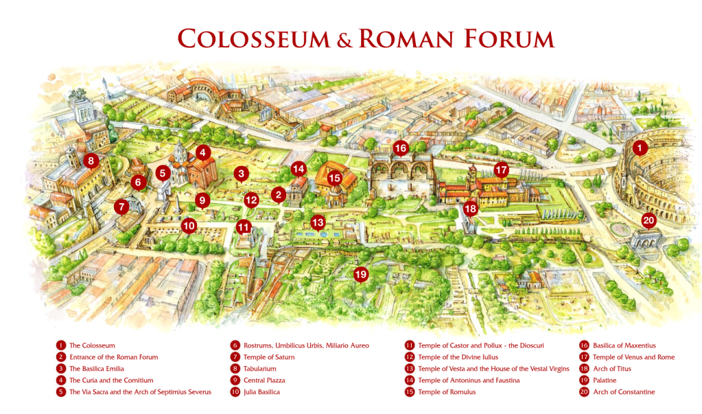 Many of the oldest and most important structures of the ancient city were located on or near the Forum. The Roman Kingdom’s earliest shrines and temples were located on the southeastern edge.