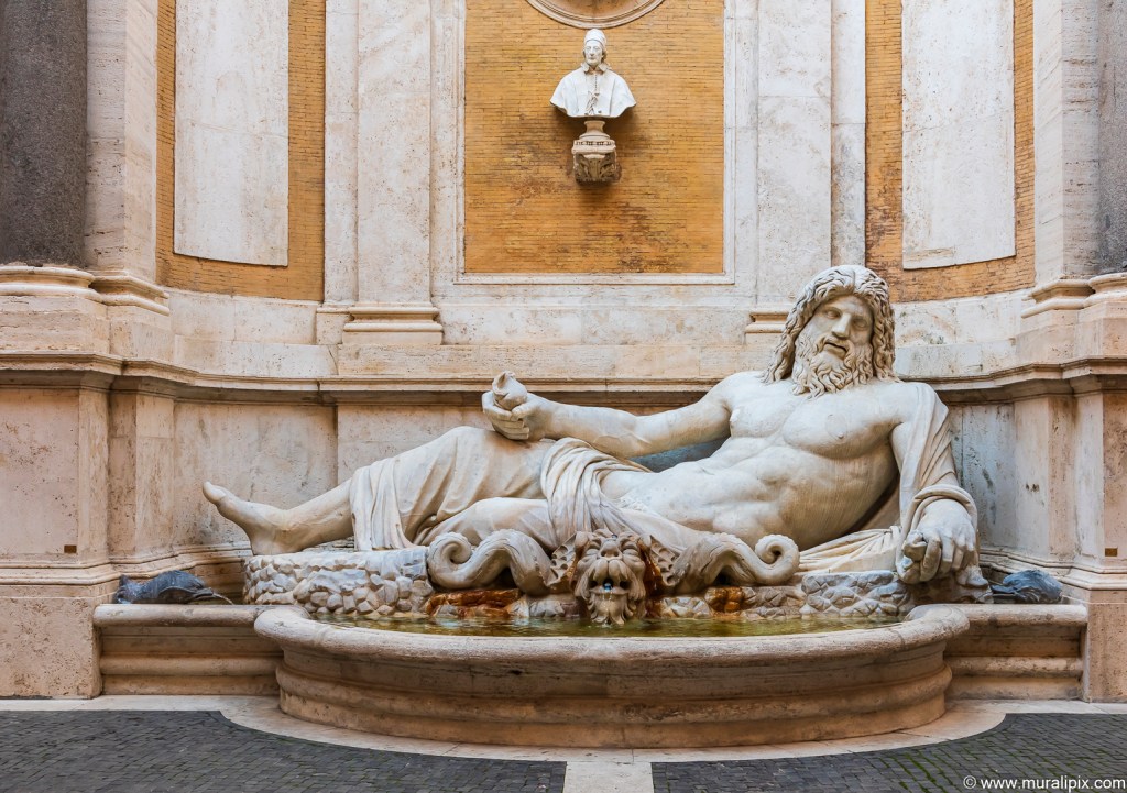 The courtyard of the Palazzo Nuovo has an incredible reclining statue of Marforio, a River god sculptured in 1st Century AD. In 1645, it was enclosed in the current location.