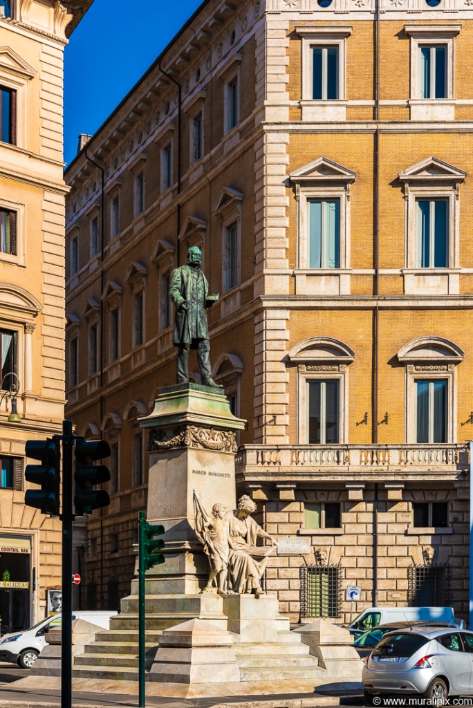 Stop 2: Corso Vittorio Emanuele II, commonly known as Corso Vittorio, is a wide east–west thoroughfare that courses through Rome. It connects a bridge over the Tiber, Ponte Vittorio Emanuele II, to the Via Torre Argentina. Marco Minghetti’s statue is located in the middle of the road. He was Italy’s Prime Minister in 1863.