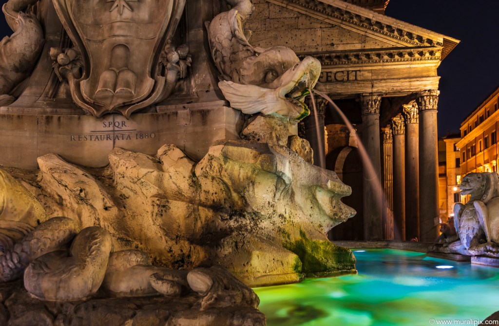 From The Trevi Fountain, we walked to the Pantheon to photograph the Fontana del Pantheon in front of the Pantheon at the Piazza del Rotonda. In contrast to the Trevi, this place was bereft of tourists and so it was much easier to photograph this fountain. Also note the acronym SPQR in the middle of the fountain that is found everywhere around Rome. It stands for for Senātus Populusque Rōmānus aka “The Roman Senate and People”. It appears on dedications of monuments and public works.