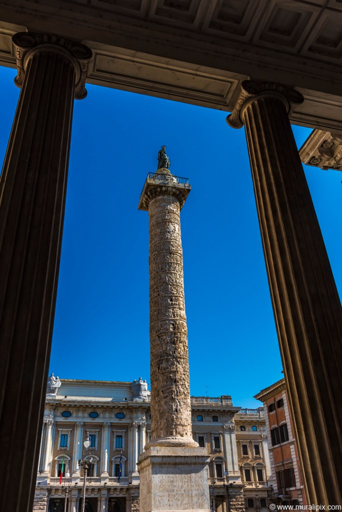 Stop 7: Piazza Colonna: It is named for the marble Column of Marcus Aurelius, which has stood there since AD 193. The piazza is rectangular. Its north side is taken up by Palazzo Chigi, formerly the Austria-Hungary’s embassy, but is now a seat of the Italian government. The east side is taken up by the 19th century public shopping arcade Galleria Colonna (since 2003 Galleria Alberto Sordi), the south side is taken up by the flank of Palazzo Ferrajoli, formerly the Papal post office, and the little Church of Santi Bartolomeo ed Alessandro dei Bergamaschi (1731-35). The west side is taken up by Palazzo Wedekind (1838) with a colonnade of Roman columns taken from Veii.