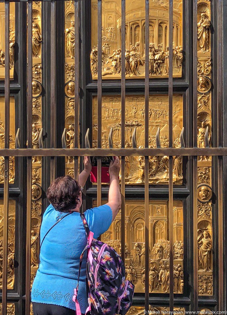 The line to go inside the Duomo was over a mile long and the security guard said that we can expect a 2 hour wait. As I had already been inside the Duomo on a previous visit in 2008, we decided to skip it on this trip. We checked out the Baptistery opposite to the Duomo.