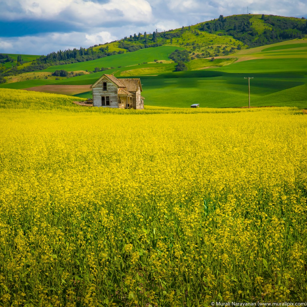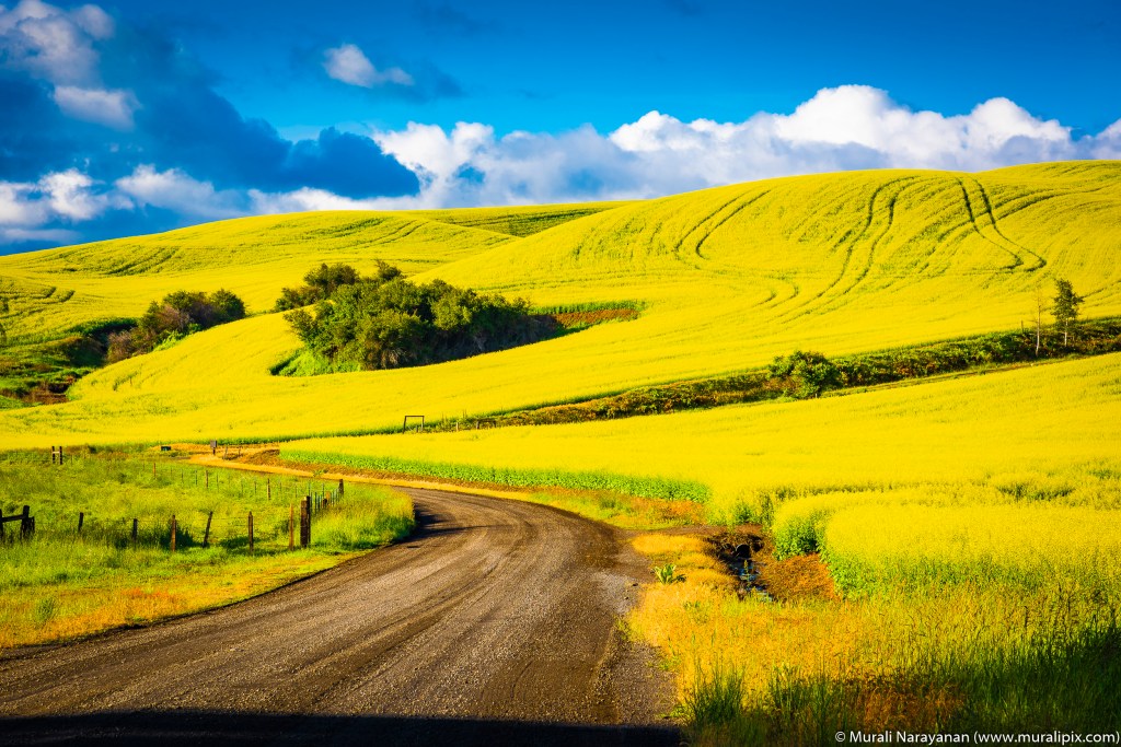Along WA State Route 194 between US 195 in Pullman and Almota Road intersection are awesome rolling hills with numerous photo ops. You can easily spend half a day exploring this area. This year there are numerous canola fields with beautiful yellow flowers (June 2020).