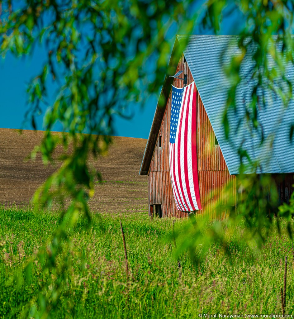 When you are driving north from Colfax towards Rosalia on US 195, you will see a beautiful barn with a US flag hanging on one of its sides. I named it the Rosalia Flag Barn. As there were no clouds in the sky on the day I was there, I ended up using the nearby tree to frame the barn.