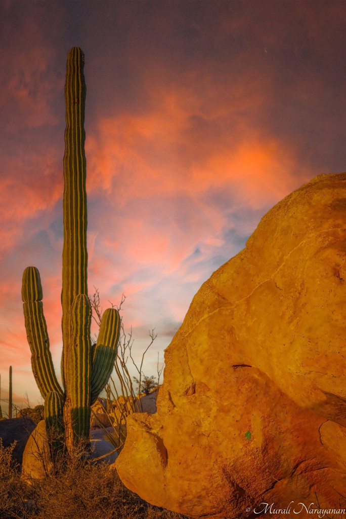 When you enter Cataviña, you would probably think that you were on another planet. The thousands of magnificent, building-sized boulders and gigantic rock formations will absolutely blow you away. This area is known as Baja’s rock garden, and you will certainly know why. We photographed the boulders and the surrounding cacti until just after sunset.