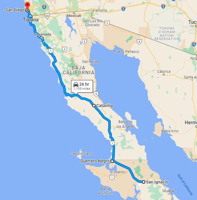 This post covers days 1 and 2 of the trip. Part 2 covers days 3 thru 5 (Guererro Negro) and Part 3 covers days 6 thru 8 (San Ignacio & return to San Diego).