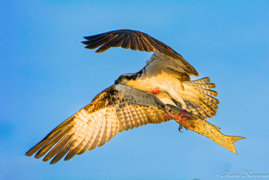 We reached the town of Guerrero Negro at around 1400 and checked into Hotel Los Caracoles right in time for a late lunch and a three-night stay. In the afternoon, we ventured out to photograph busy ospreys bringing dinner from the nearby lagoon. We saw an osprey leave the nest, catch a fish, fly around the nest with the fish about 45 minutes later but decided to land on top a telephone pole a few hundred feet away from the nest and eat the dinner.