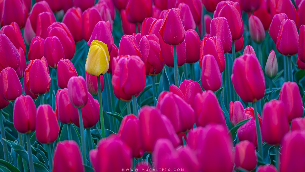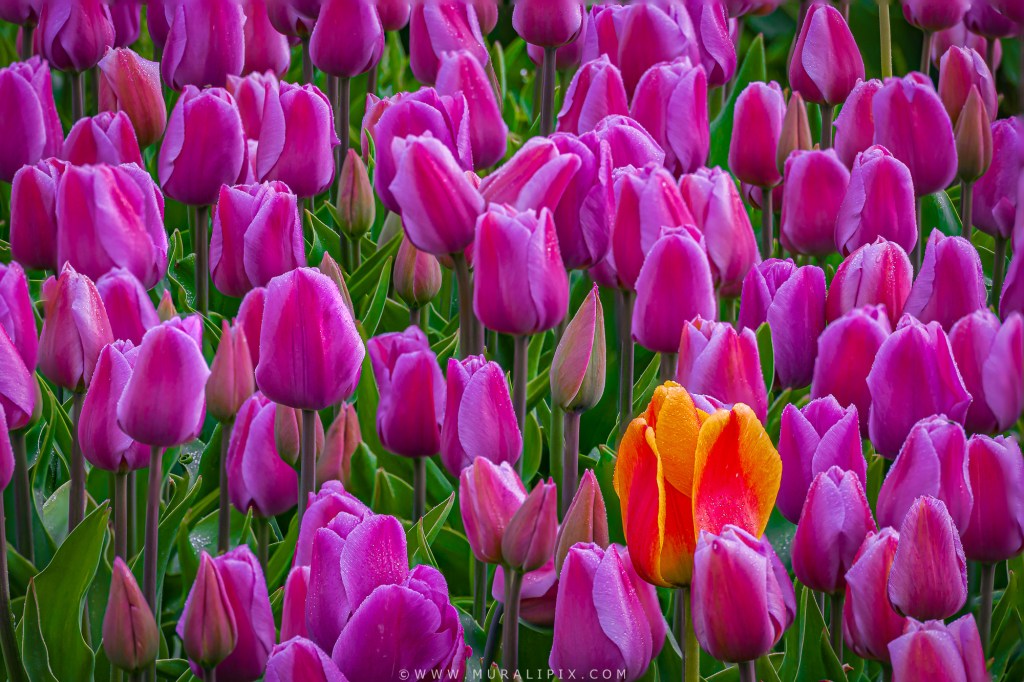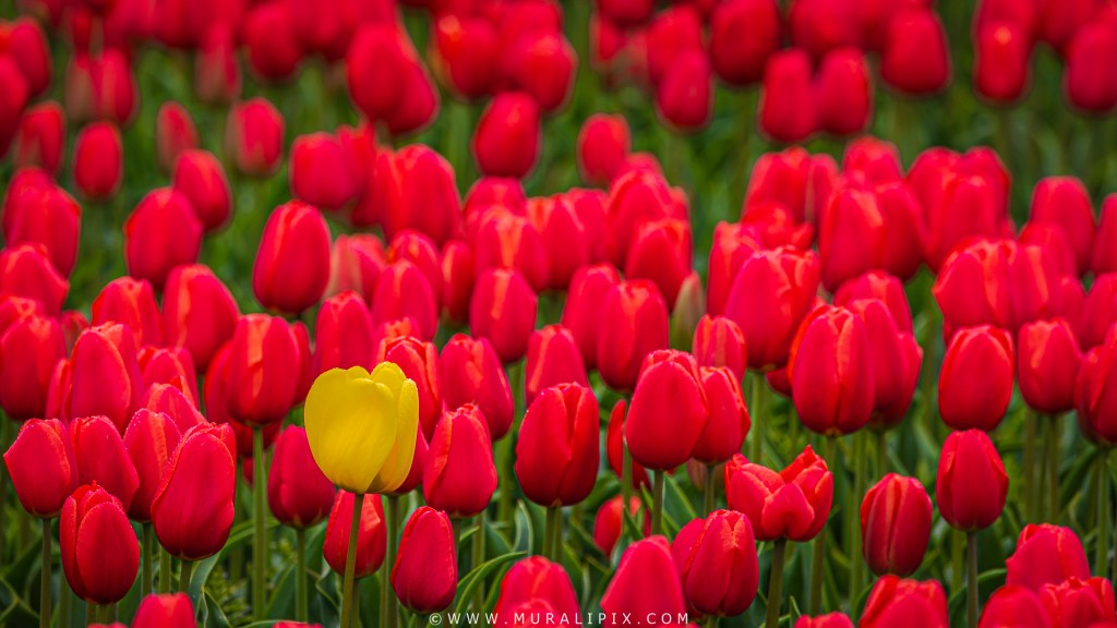 Sometimes, there would be a single flower of a different color mixed in with a whole bunch of the same color. This could be either due to errors at planting or intentionally done to aid photographers in capturing unique compositions. I had seen this during my previous visit to Skagit two years ago, but I decided to focus (no pun intended) on the contrasting colors that morning. The following images highlight the contrasting colors of these beautiful flowers.