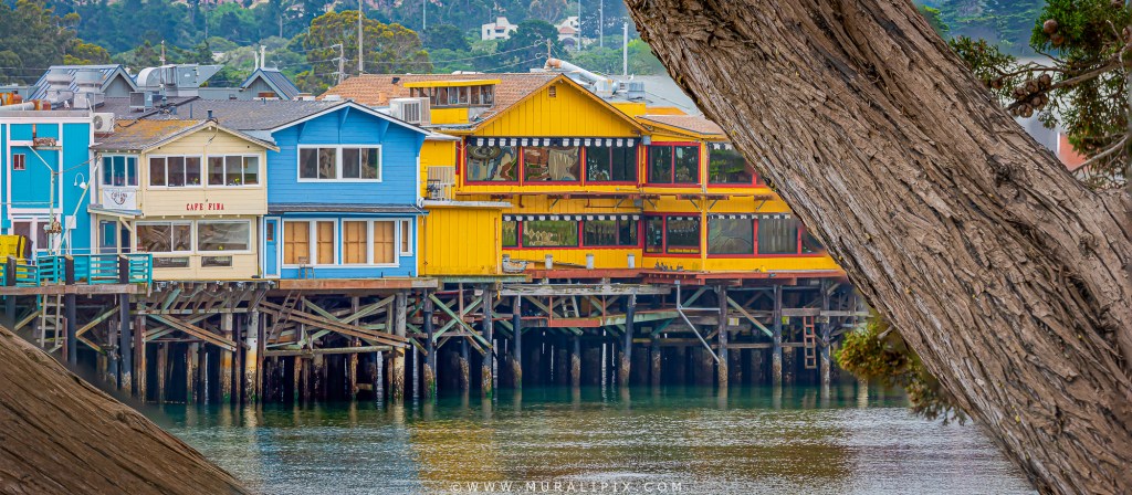 We reached Monterey at around 10 and headed to the Wave Street Cafe in the Cannery Row area for a sumptuous breakfast. Excellent food with impeccable service. After breakfast, we headed to the Fishermans Wharf to scout for a good spot to photograph at sunset. After a few minutes there, we parked the car at Sister City Park. We walked along the Monterey Bay Coastal Trail. I got a shot of the old wharf buildings.