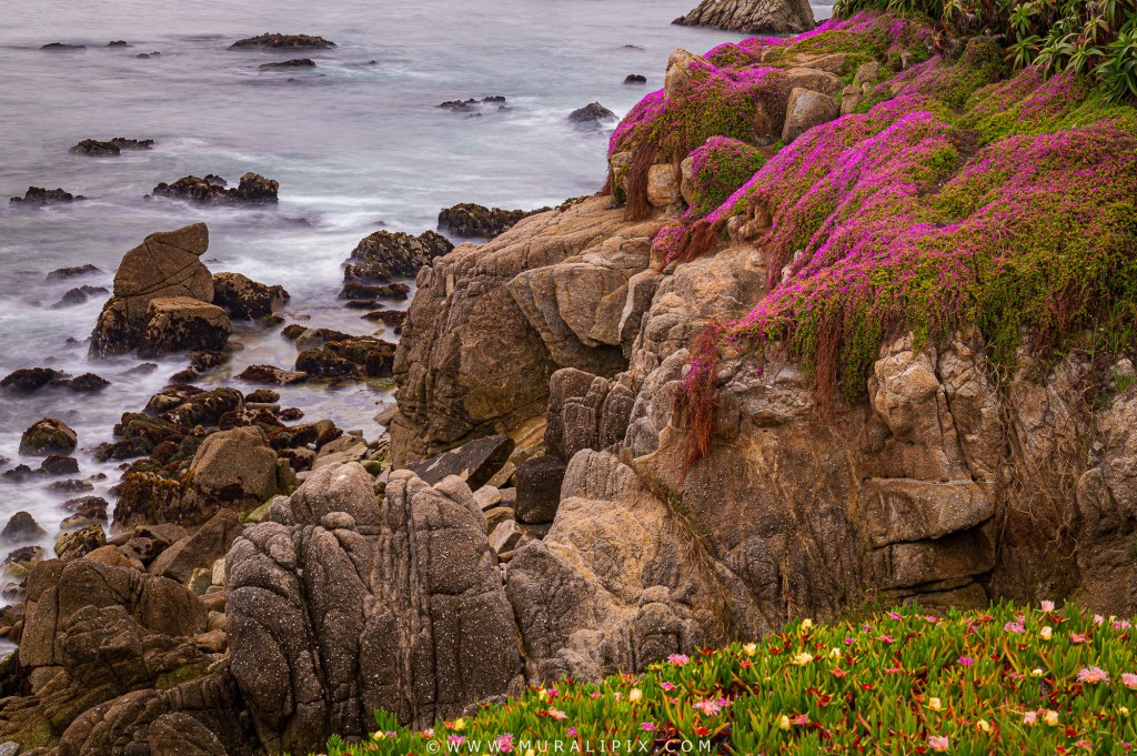 This was our final day. The sunrise forecast was not promising. We got up a bit late, at around 6am, and checked out of the hotel at 7. We went to Otter Point at Perkins Park. The park is known for its beautiful array of colorful flowers and well-maintained trail. Overlooking the stunning Pacific coastline, the park offers visitors a peaceful place to stroll and enjoy the natural beauty of the area. We spent about two and a half hours photographing the rugged coastline and the flowers.