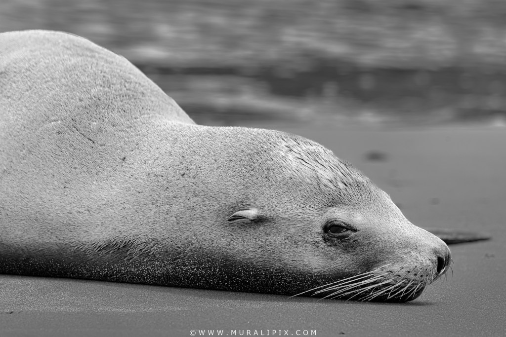 At Booths Cannery Beach, we found a sea lion relaxed, sunbathing, and not bothered by tourists taking photos and selfies next to it. As we had nothing else to shoot due to harsh light, I also grabbed shot.