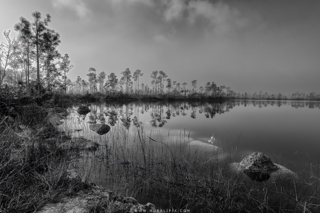 Like Long Pine Key, Pine Glades Lake is surrounded by slash pines and reeds, making it a fantastic spot for early morning photography. When we visited, a mist hung over the still water, creating an ethereal atmosphere, while a large alligator glided slowly toward us, adding to the scene.