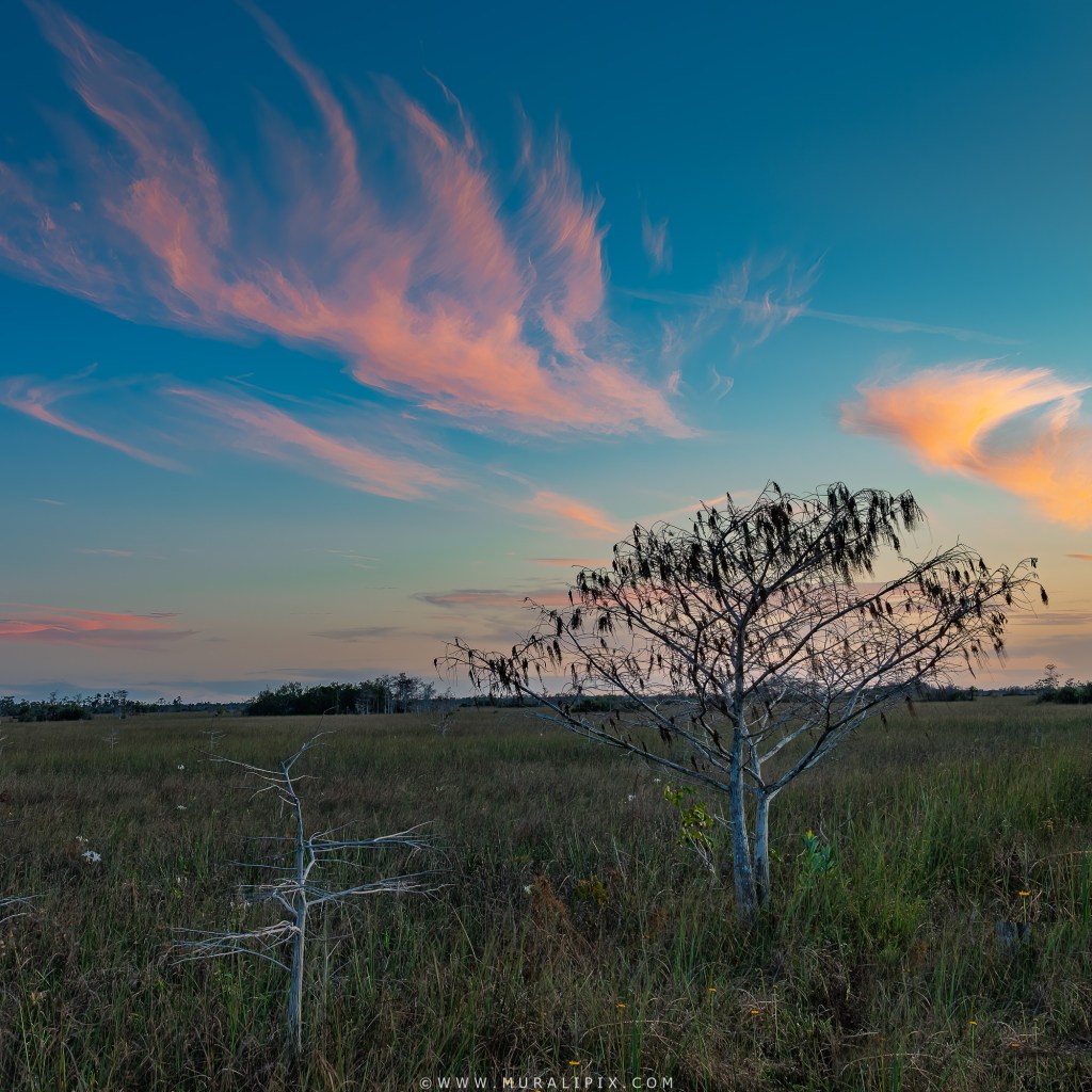 Our initial plan was to shoot the sunset at Long Pine Key, but upon arrival, we realized it was better suited for sunrise. With no backup plan, we drove along the park road toward Flamingo, searching for a new spot. Eventually, we stopped near a stand of slash pine trees and captured the sunset there.