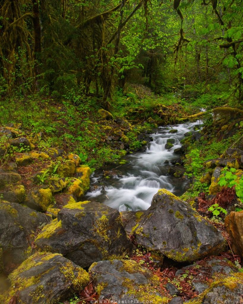 While many visitors head straight to the Hoh Visitor Center—about 18 miles from the U.S. 101 turnoff—the drive along Upper Hoh Road itself offers countless opportunities to photograph the rainforest’s stunning beauty. Rather than rushing through, we took nearly four hours to explore and capture the scenes along the way, including the many streams that weave across the road and feed into the Hoh River.