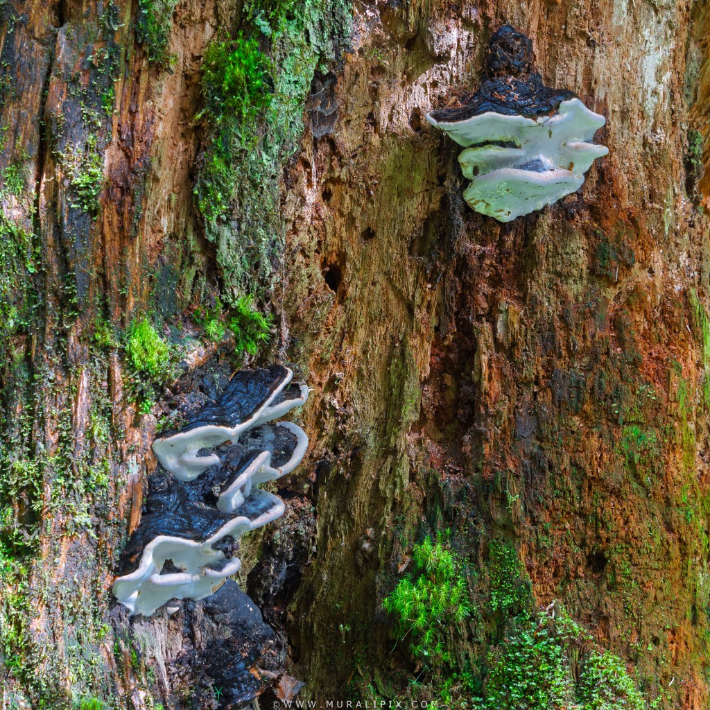 Mushrooms Growing on a Sitka Spruce Tree