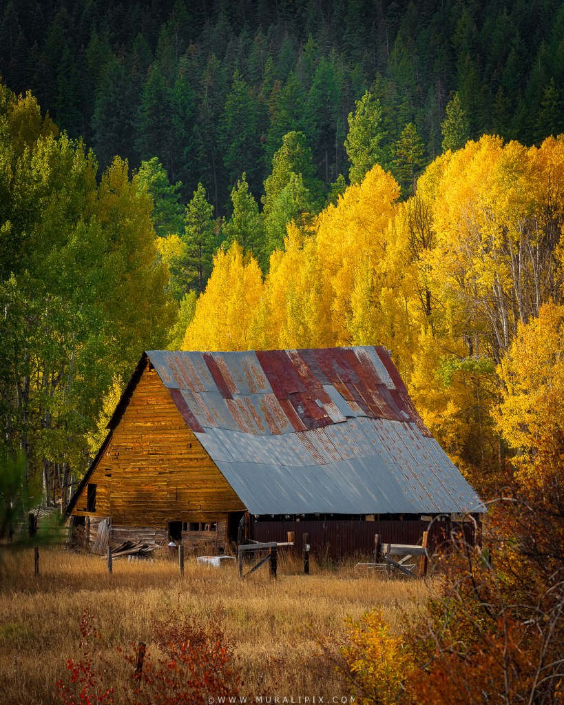 Aspens are found throughout much of the western U.S., but in Washington State, they appear only in scattered pockets. About 20 miles east, you’ll reach the small hamlet of Winton. From the highway, an old barn comes into view, with a cluster of striking aspens rising behind it. You can turn onto Winton Mill Road, park, and photograph the barn framed by the trees. The best light is in the late afternoon or just after sunrise, when the scene truly comes alive.
