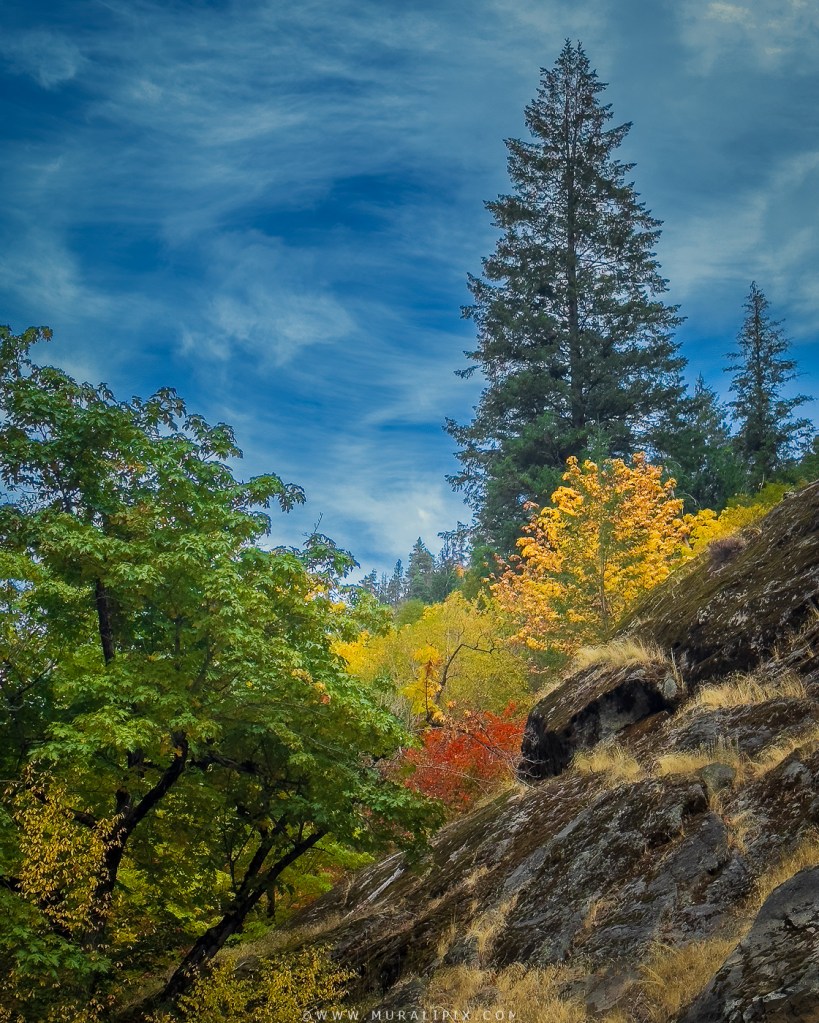 Autumn along the 35-mile stretch of US Highway 2 (locally also called Stevens Pass Highway) between Stevens Pass and Leavenworth, WA is a photographer’s dream, where the winding road follows the Wenatchee River through a corridor of vivid color. Golden cottonwoods and fiery maples line the banks, their reflections shimmering in the clear water. The contrast between the evergreen conifers and the blazing deciduous trees is what makes this stretch of the highway so spectacular in the fall. Morning mist often lingers over the river, softening the light and adding a painterly mood to the landscape. By late afternoon, warm sunlight filters through the valley, illuminating the fall canopy in a brilliant glow. It’s a stretch of highway where fall feels alive—fleeting, radiant, and photogenic.